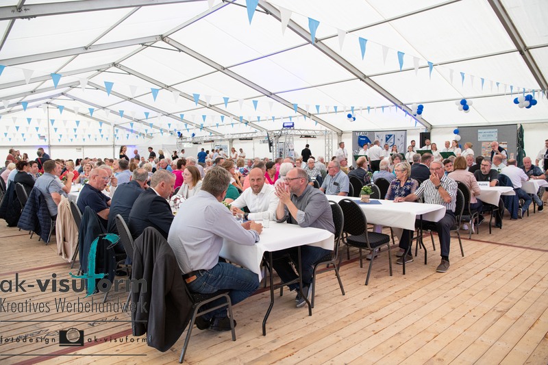 Das Fest begann am Freitag mit einer internen Feierstunde, zu der der Vorstand seine Jubilare der letzten 3 Jahre eingeladen hatte. Außerdem standen verdiente Mitglieder auf der Gästeliste, die sich im Verlauf der Jahre durch ihren unermüdlichen ehrenamtlichen Einsatz für den Verein verdient gemacht haben. Fehlen durften aber auch nicht Gäste aus den benachbarten Vereinen, wie z.B. SW Esch, dem SV Uffeln oder Arminia Ibbenbüren. Kompletiert wurde die Gästeliste durch die Sponsoren des SV Dickenberg, sowie Gästen aus Politik, Stadtverwaltung und Stadtsportverband. Moderator Till Neuhaus begrüßte um kurz nach 19 Uhr somit etwa 280 geladene Gäste. Empfangen wurden die Gäste mit einer musikalischen Einstimmung durch den Dickenberger Spielmannzug unter Leitung von Erwin Eismann.